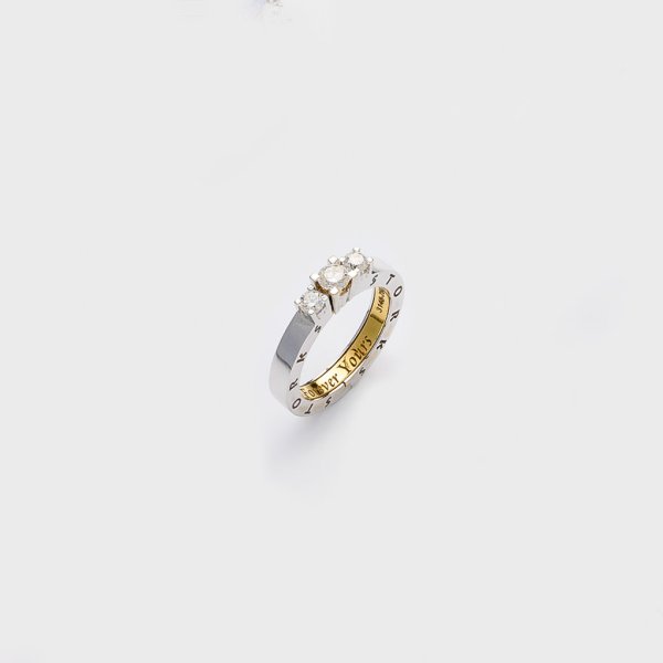 Weiß- und Gelbgold, gest. 750. Besetzt mit 3 Brillanten von zus. ca. 0,67 g. (F-G/vs-si). Aufklappbar und als Brillant-Solitärring zu tragen. Herstellerzeichen. Gew. ca. 7,02 g.