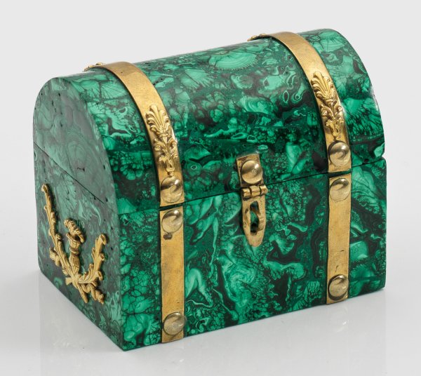 Lot 1341: Kleine Malachit-Runddeckeltruhe