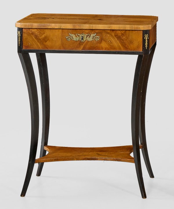 A Danube Monarchy walnut veneered and partly ebonized Biedermeier side table.