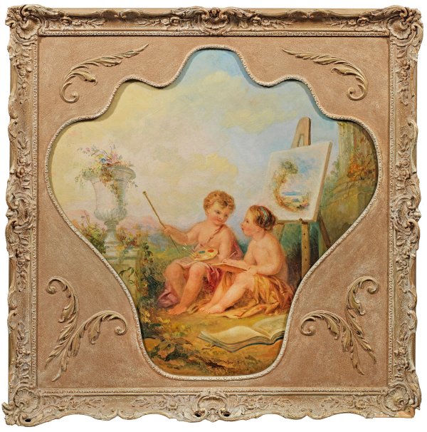 Allegorisches Genrebild des englischen Künstlers, der zu den bekanntesten, vielseitigsten, schaffenreichsten, erfindungsfreudigsten und gefragtesten Malern der viktorianischen Ära gehört. Parris studierte seit 1816 an der Royal Academy, von da an bis zu seinem Lebensende war er ein häufiger Aussteller in der Royal Academy und der British Institution. 1832 wurde er zum Historienmaler von Königin Adelaide ernannt. Öl/Lwd.; R. u. sign. u. dat. 1840(?). 85 cm x 85 cm. Rahmen.