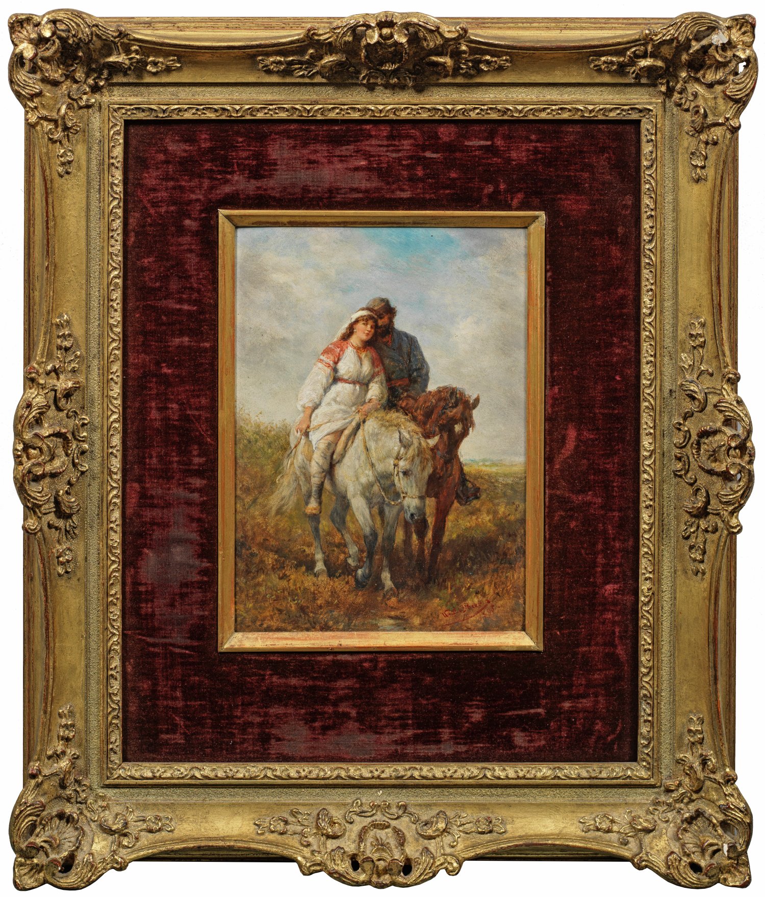 Feinmalerisch ausgeführtes Genrebild Beers. Der Künstler studierte am Städelschen Kunstinstitut in Frankfurt bei Jakob Becker und Edward von Steinle. Prägend für Beers Oeuvre waren seine wiederholten Reisen nach Russland, während längerer Aufenthalte 1867-1870 und 1877 im Gouvernement Smolensk studierte Beer eingehend Land und Leute. Durch die danach von ihm häufig gemalten Motive aus dem russischen Volksleben wurde er auch "Russen-Beer" genannt. 1897 berief man Beer zum Leiter eines Meisterateliers im Städelschen Kunstinstitut und ernannte ihn 1899 zum Professor. Öl/Malkarton. R. u. sign. u. dat. 1898. 26,5 cm x 19 cm. Rahmen.