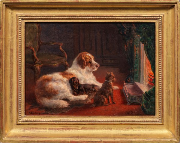 Charakteristisches Gemälde des bekannten Tiermalers, der sich nach seinem Studium an der Dresdener und Berliner Akademie bei Carl Steffeck und Paul Friedrich Meyerheim auf lebendig geschilderte Pferde- und Hundedarstellungen spezialisierte. 1893 wurde er selbst Professor. Öl/Lwd.; L. u. sign.; Verso Etikett der Hof-Kunsthandlung Honrath & van Baerle, Berlin, um 1900. 33 cm x 24 cm. Rahmen.