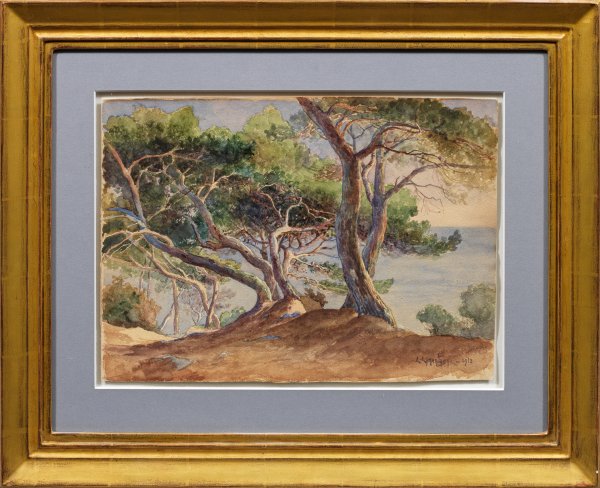 Lamontagne studierte an der École des Beaux-Arts de Paris. Seine Werke zeigen oft Motive aus der Region von Toulon, wo er sich 1911 niederließ, darunter auch Cap Brun. Aquarell/Papier. R. u. sign. u. dat. 1913. 27,5 cm x 39,5 cm. Rahmen.