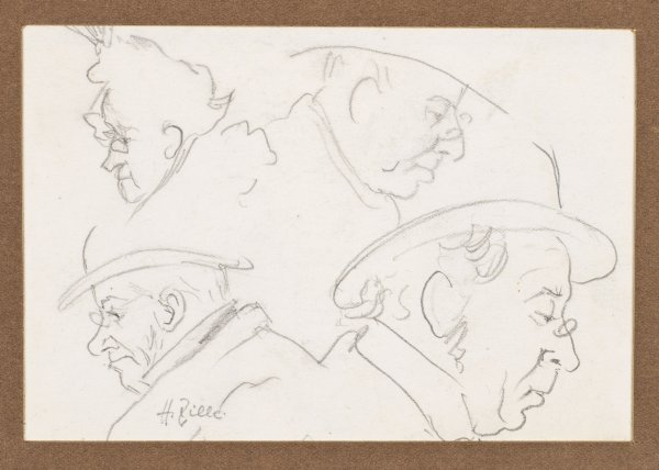 Sammlung von 13 Skizzenblättern mit Porträtstudien