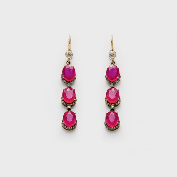 Lot 990: Paar Rubin-Diamant-Ohrgehänge