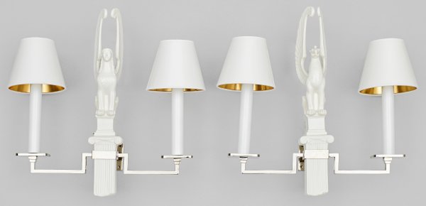 Lot 2108: Paar Wandleuchter mit Greif und Sphinx