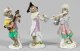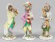 20-tlg.; Auf reliefiertem Rocaillesockel neunzehn charakteristische, stehende bzw. sitzende Figuren eines Kapellmeisters mit Notenpult, Gitarristen, Geigers, Baßgeigers, Triangelschlägers, Paukenschlägers und -trägers, Klavierspielers, Flötisten, Klarinettisten, Trommlers, Waldhornbläsers, Dudelsackpfeifers, Fagottspielers, einer Drehleierspielerin und vier Sängerinnen. Fein gestrichelte Fellzeichnung. Nach Kupferstichvorlagen nach Christophe Huet. Polychrome Malerei mit Goldstaffage. Entw. Johann Joachim Kaendler und Peter Reinicke. Seltene Ausformung des Notenpultes aus dem 18. Jh.; Teilw. rest./minim. best.; Schwertermarke, teilw. verwaschen. H. 9 cm - 18 cm.