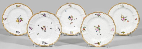 Lot 2446: Fünf Zierteller mit Dekor "Deutsche Blume"