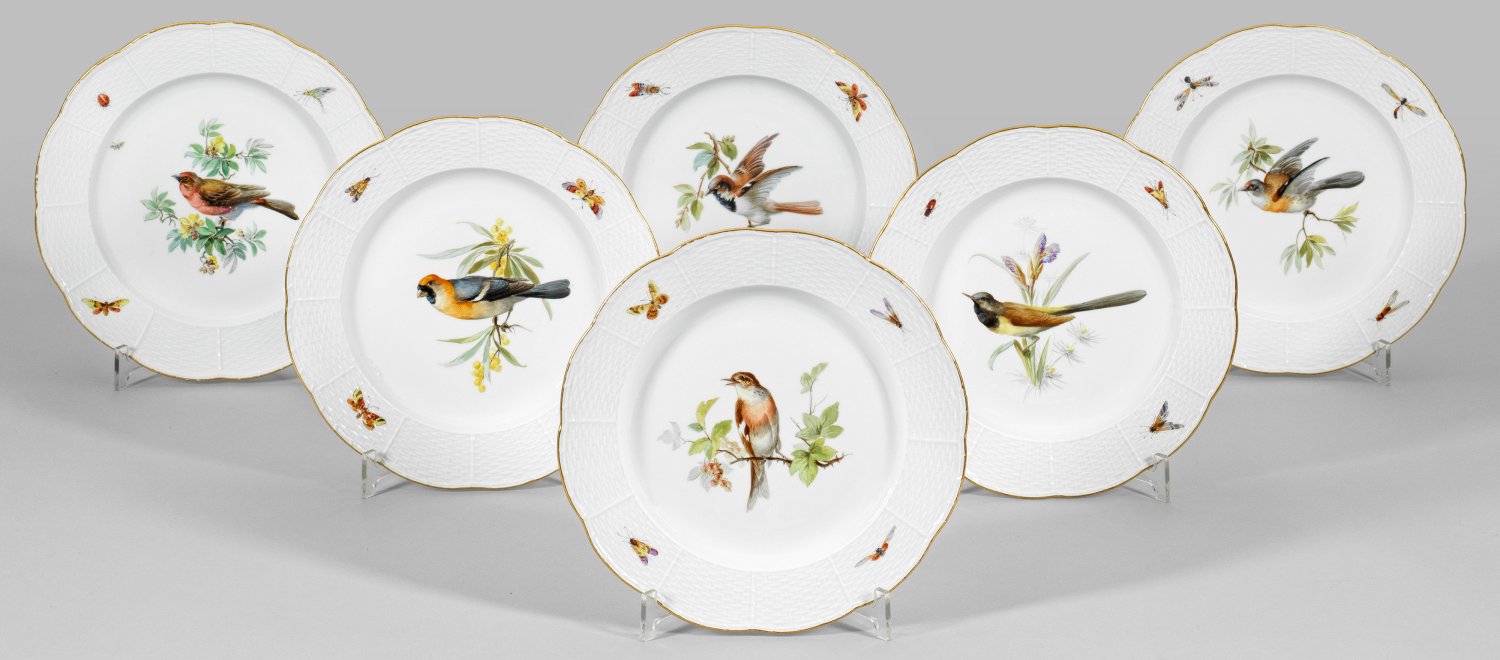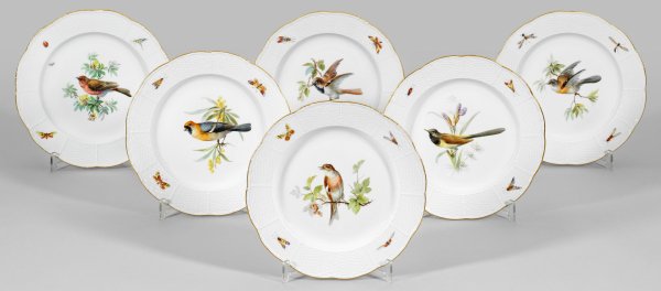 Lot 2559: Sechs Speiseteller mit Vogeldekor