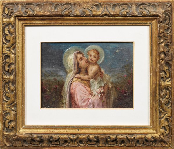 Blumenmädchen an der Kapelle/Madonna/Christus und Josef