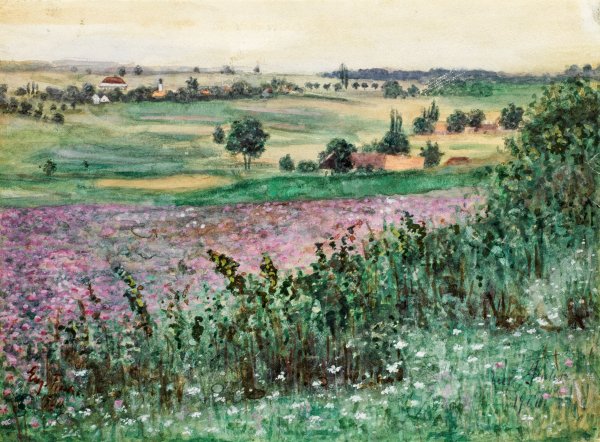 Frühes, 1900 entstandenes Werk der jüdischen Künstlerin, deren Oeuvre größtenteils verloren ist. Fuchs war Schülerin bei Franz Skarbina, Walter Leistikow und Lovis Corinth; 1918-1933 beschickte sie die wichtigen Kunstausstellungen in Berlin; 1933 emigrierte sie nach Paris, wo sie im Salon d'automne ausstellte und Mitglied im Freien Künstlerbund war. Aquarell mit Weißhöhungen/Papier, alt auf Karton kaschiert. R. u. sign. u. dat.; 24 cm x 32,5 cm. Rahmen.