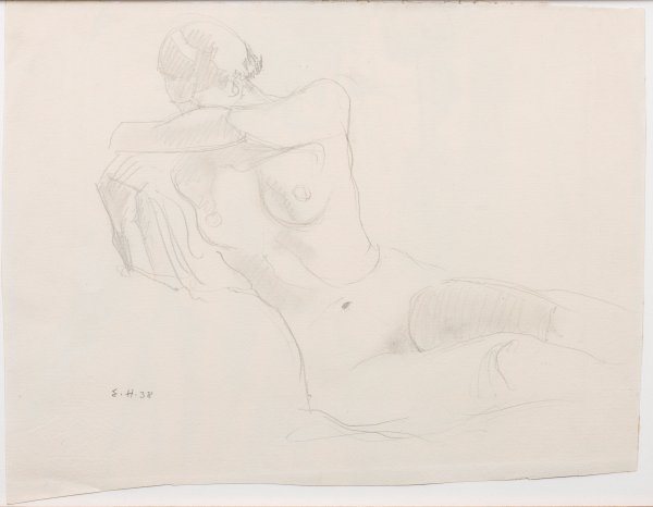 German painter active 20th C.; Pencil on wove paper (with watermark). Signed with monogram "E. H.", dated (19)38. Collector´s stamp on the reverse.