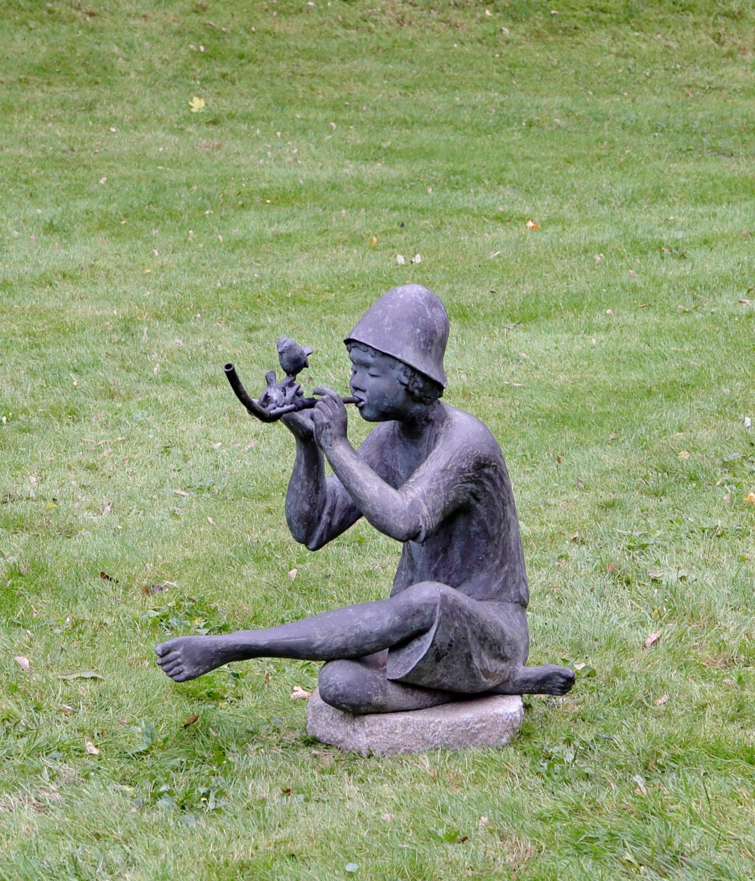 Flöte spielender Hirtenknabe mit Vögeln als Brunnenfigur