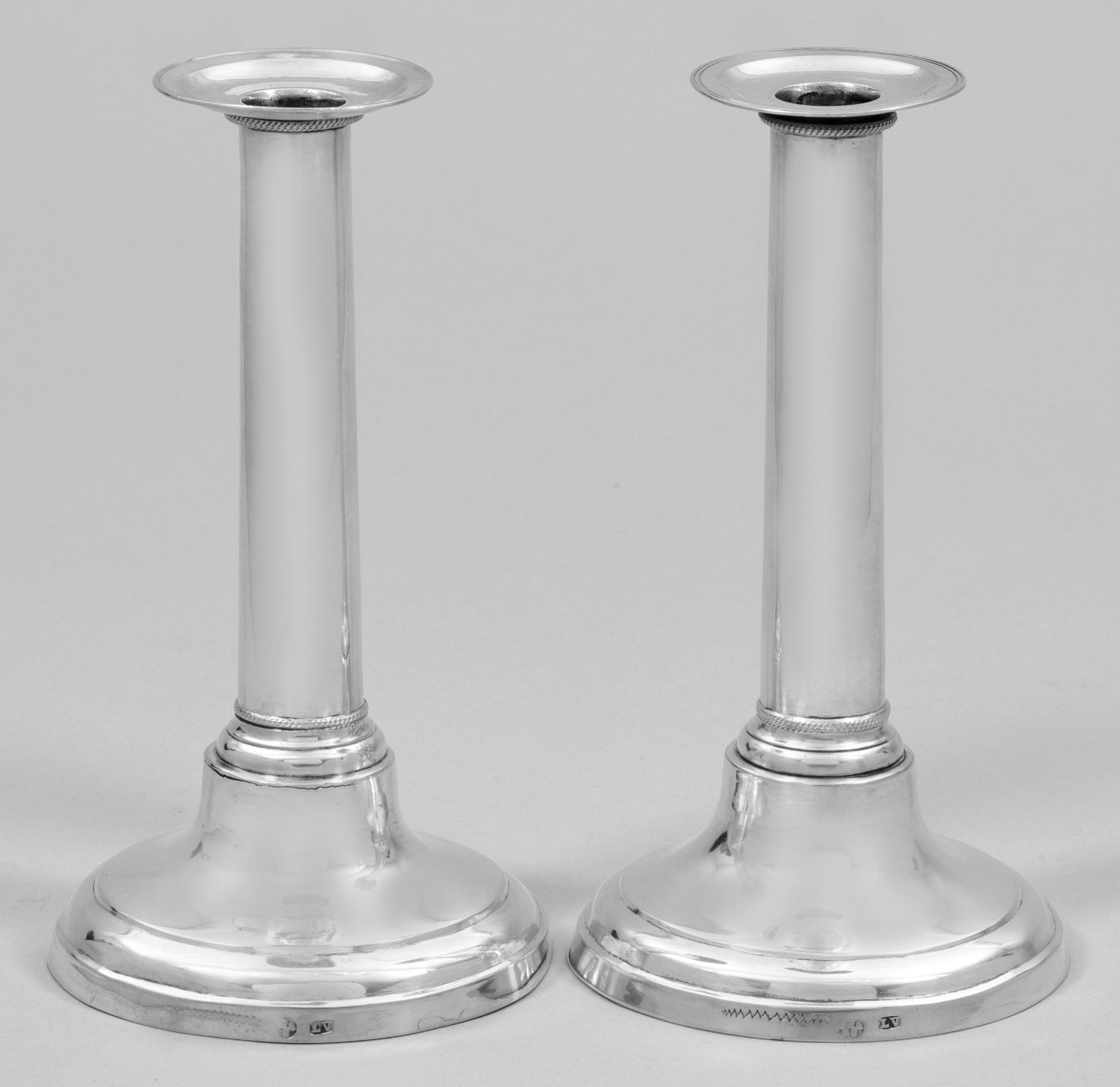 A pair of German Empire silver candlesticks by Ludwig Adolph Vetter I. (master since 1795). Test, assay and master's mark.