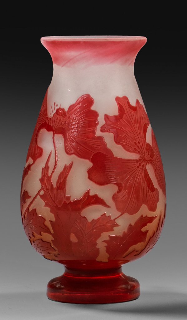 A French cameo glass vase by Gallé with acid-etched and polished decor of poppies. Signed.