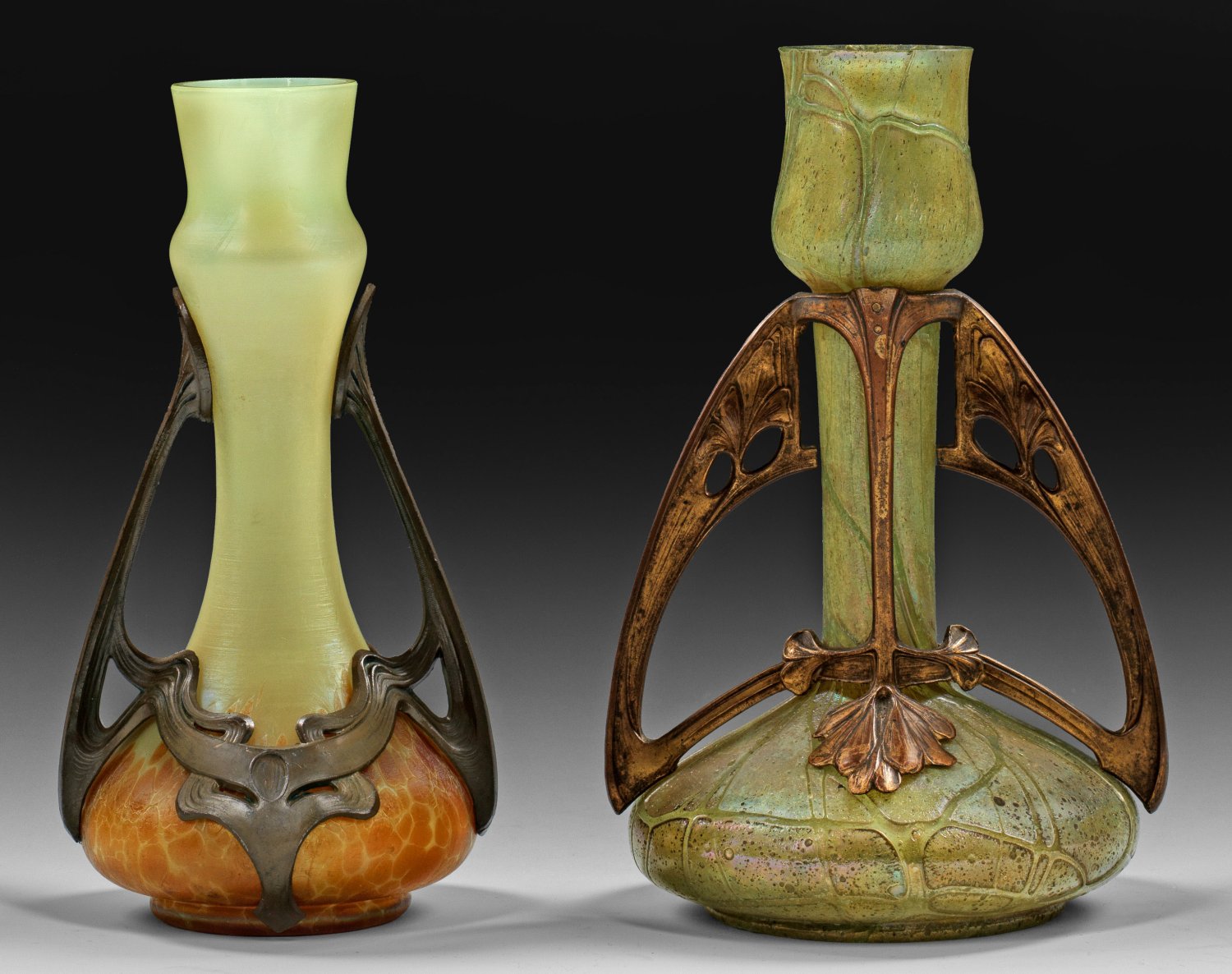 Lot 426: Zwei Jugendstil-Enghalsvasen mit Metallmontierung