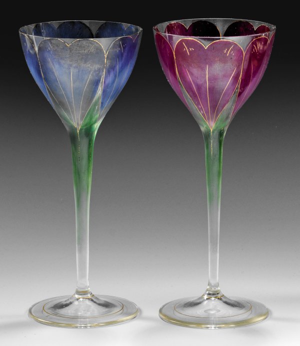 Lot 434: Zwei Jugendstil-Stängelgläser mit Krokusdekor