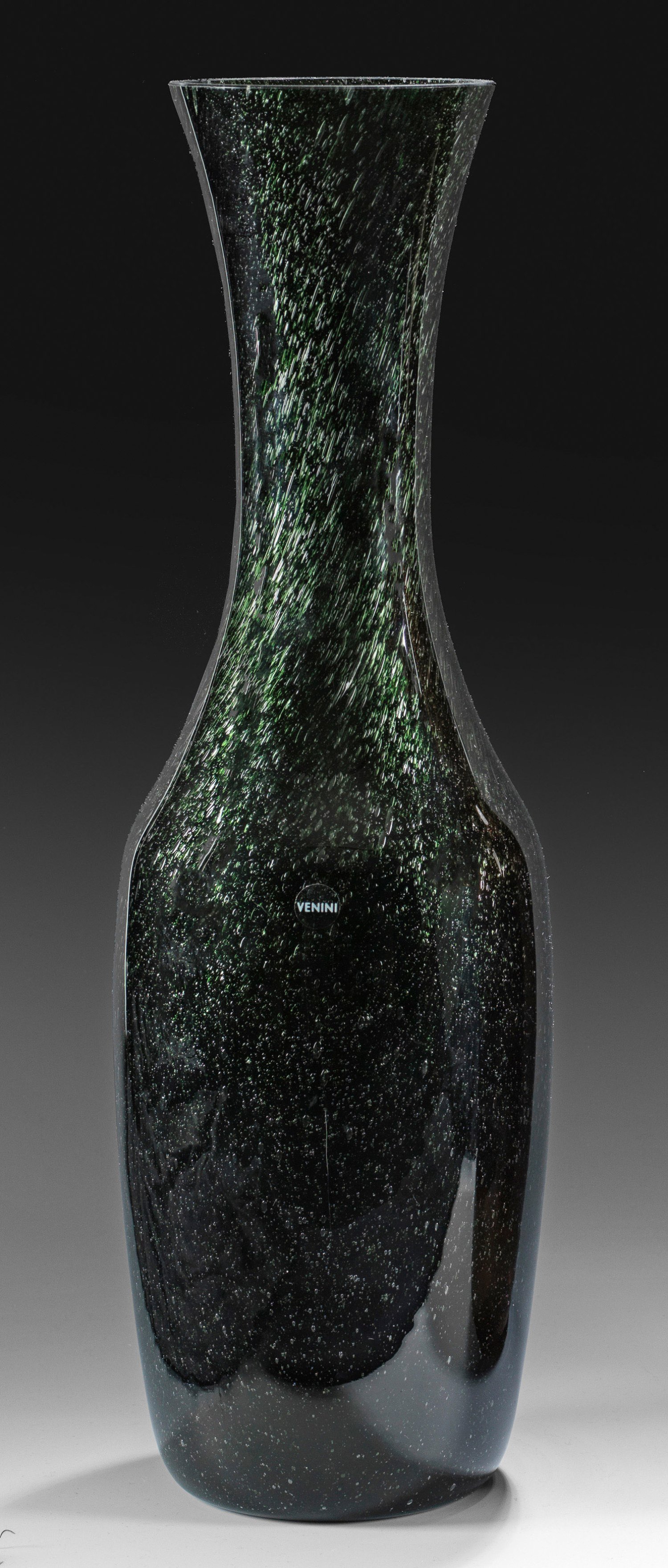 Schlanke Balusterform mit gestreckt-ovoidem Korpus und leicht einschwingendem Hals. Dunkelgrünes Glas mit feinen Luftblaseneinschlüssen. Modell-Nr. 78400. Sign. u. dat. "venini 2009", Firmen-Etikett. H. 50 cm. Original Venini-Karton.