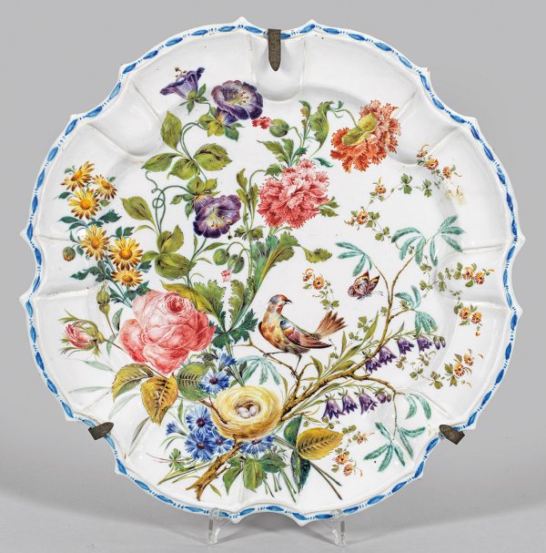 Lot 465: Große Schauplatte mit Blumen, Vogelnest und Schmetterling