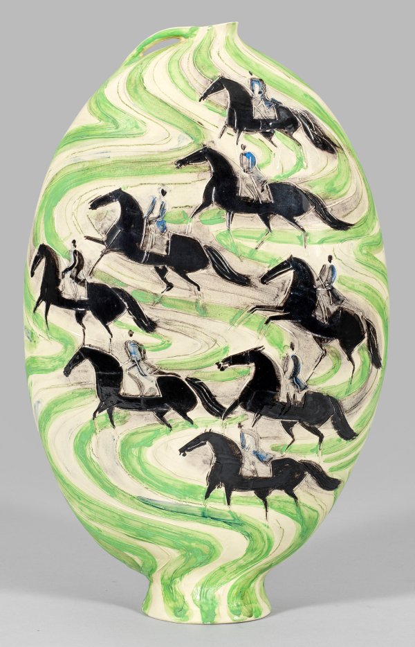 Lot 476: Große Künstlerkeramik-Vase von André Brasilier mit Reitern