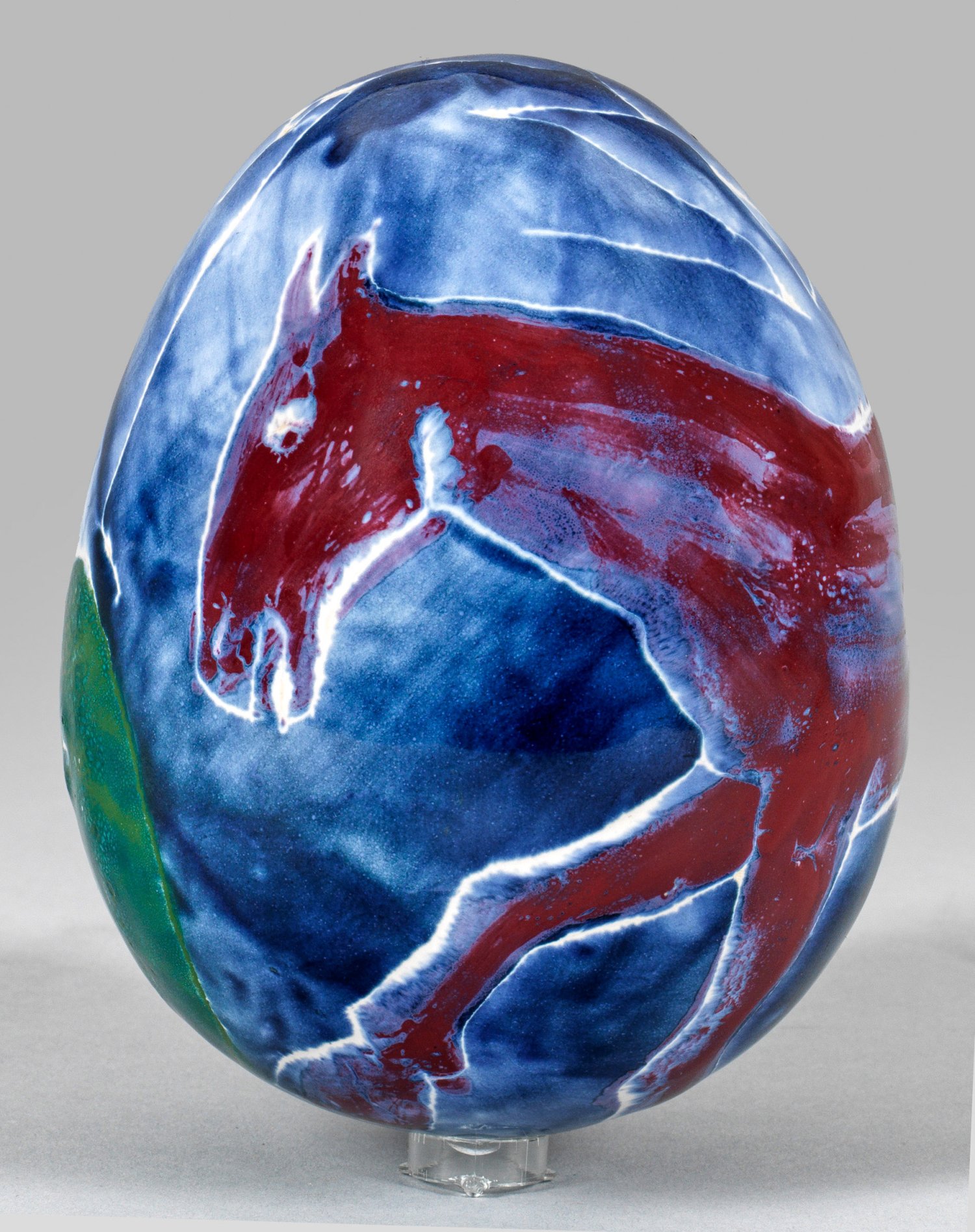 An unique polychrome painted faience egg by A. R. Penck created in 1993. Signed.