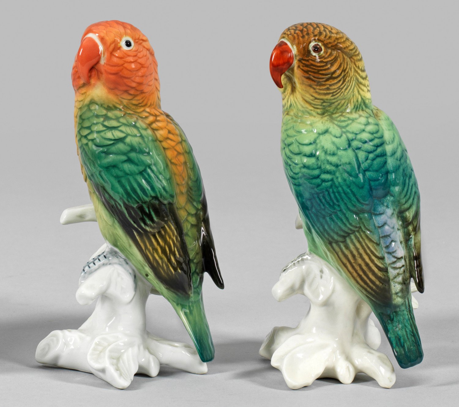 A pair of Thuringian porcelain parrot figures. Insignificantly glaze cracks. Manufacturer's mark.