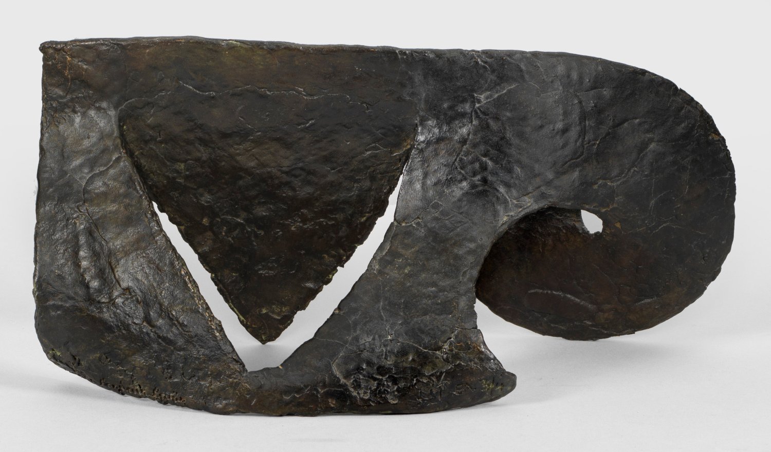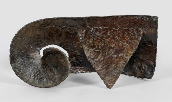 Bronze, dunkel patiniert, 1984. Guss Susse, Paris, inschriftlich bez. "Susse Fondeur Paris", nummeriert "EA 3/4". Außerhalb der EA-Auflage für den Künstler wurde noch eine nummerierte Auflage von 7 Exemplaren gegossen. Abstrakte Plastik Flanagans, der zu den bedeutendsten britischen Bildhauern der Gegenwart gehört. Flanagan studierte 1957/58 am Birmingham College of Art and Crafts, danach an der St. Martin’s School of Art in London, wo er 1967 bis 1971 selbst lehrte. 1972 nahm er an der documenta 5 in Kassel in der Abteilung "Individuelle Mythologien" teil; 1982 war er wiederum als Künstler auf der documenta 7 vertreten, außerdem repräsentierte er im selben Jahr Großbritannien auf der Biennale in Venedig (Biennale di Venezia). Mit seinen Skulpturen bzw. Plastiken ist Flanagan weltweit im öffentlichen Raum in Europa und in den USA vertreten. Außer abstrakten Arbeiten schuf er mit Vorliebe Darstellungen von Hasen und anderen Tieren. Ca. 13,5 cm x 27 cm x 10 cm.