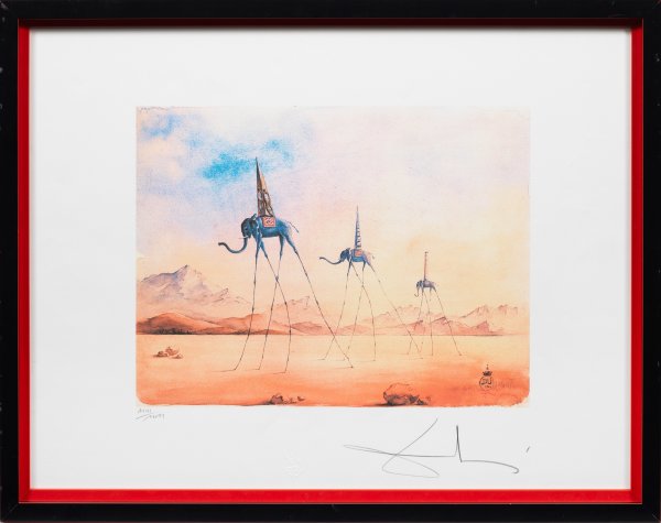 Chromolithographie/Velin. Sign. oder bez., nummeriert MIII/MM (1003/2000), Blindstempel sowie im Stein bez., sign. und dat. 1964. Nach einem Werk Dalís aus dem Jahr 1964. Darstellung 32 cm x 42,4 cm. Rahmen.
