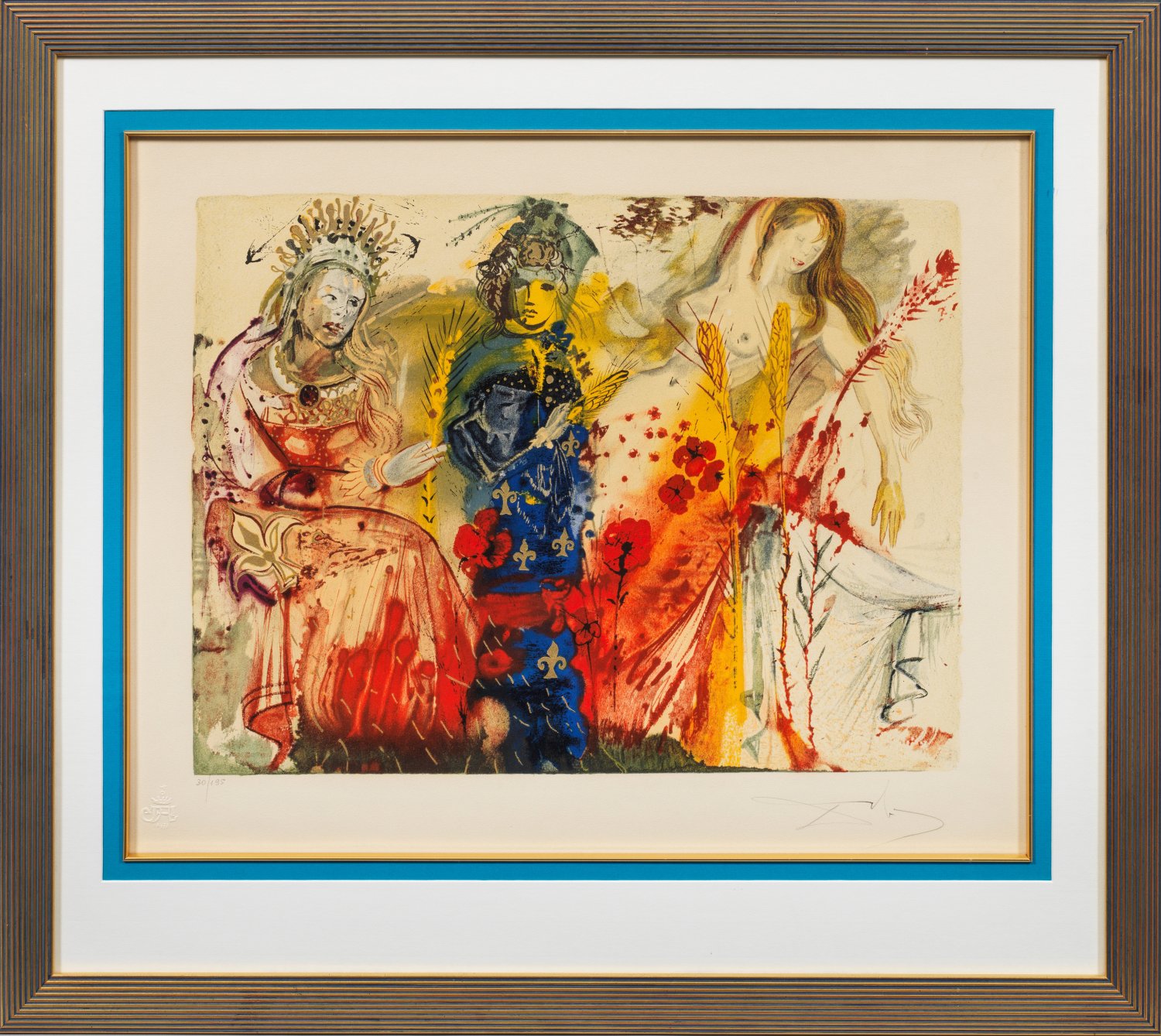 Farblithographie/Arches-Velin, 1972. Sign. u. nummeriert 30/195. Verlegt von Les Heures Claires, Paris, mit dem gekrönten Blindstempel "S Dalí 1971". Wvz. Michler/Löpsinger 1361. Darstellung ca. 41,3 cm x 55,7 cm. Rahmen.