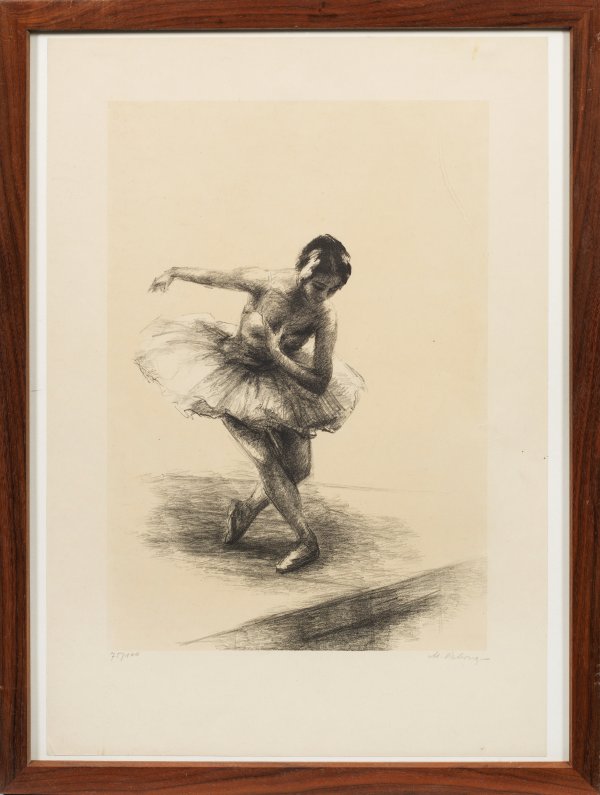 Lithographie/Papier. Sign. u. nummeriert 75/100. In Motiv und Stil typisches Blatt der tschechischen Künstlerin, die mit Vorliebe Ballettmotive schilderte. Darstellung 47,5 cm x 33,5 cm; Blatt 62,5 cm x 44 cm Rahmen.