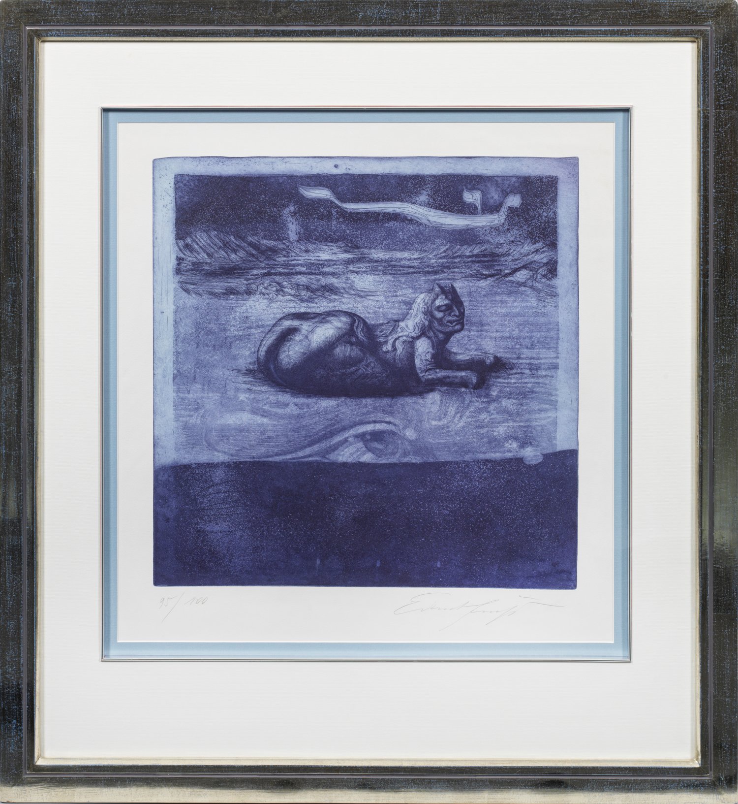Farbradierung und -aquatinta in Blauviolett/Velin, 1970. Sign. und nummeriert 95/100. Druck bei Fischer, Wien, 1971. Wvz. Weis 156IIIc. Plattenmaß 49,5 cm x 49,7 cm. Rahmen.