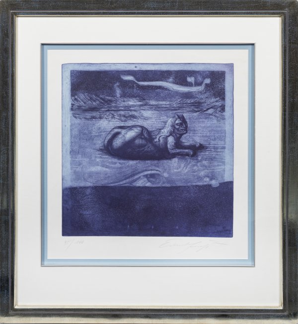 Etching and aquatint in blue violet on wove paper, 1970. Hand-signed and numbered 95/100.