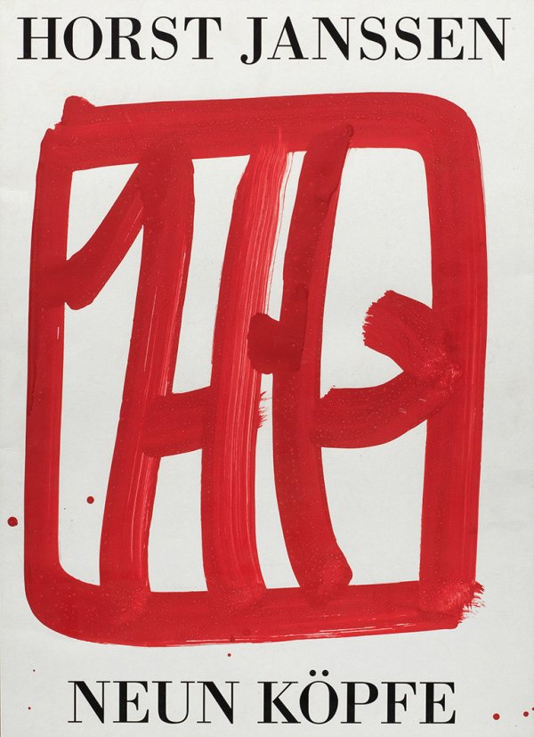 Lithographie und Acrylfarbe/leichter Karton, um 1990. Mit Künstlermonogramm in roter Acrylfarbe überarbeitetes Plakat, erschienen anlässlich der 2-bändigen Grafikmappe "Neun Köpfe", Verlag St. Gertrude, Hamburg 1990. 64 cm x 46,5 cm. Rahmen.