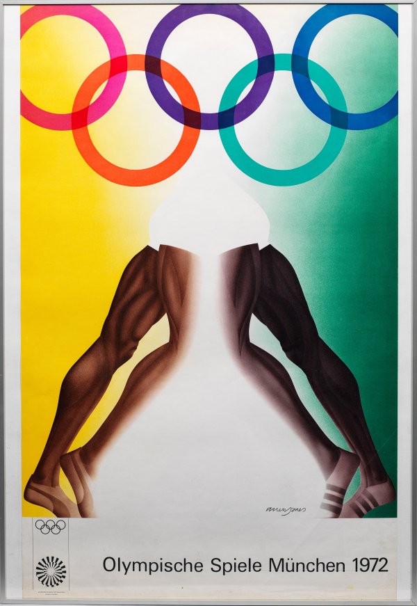Farblithographie/Papier, 1970. Im Stein sign. und typografisch betitelt und bez.; Edition Olympia 1972 GmbH, Druck in Deutschland. Plakat für die Olympischen Sommerspiele in München 1972. Wvz. Lloyd 63. Blatt ca. 100 cm x 64 cm. Rahmen.