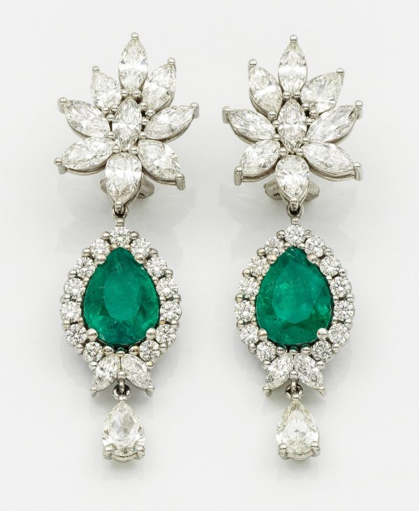 Lot 1076: Paar Juwelen-Ohrgehänge mit kolumbianischen Smaragden