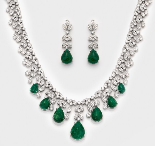 Lot 1078: Prachtvolles Juwelen-Parure mit Smaragden und Brillanten