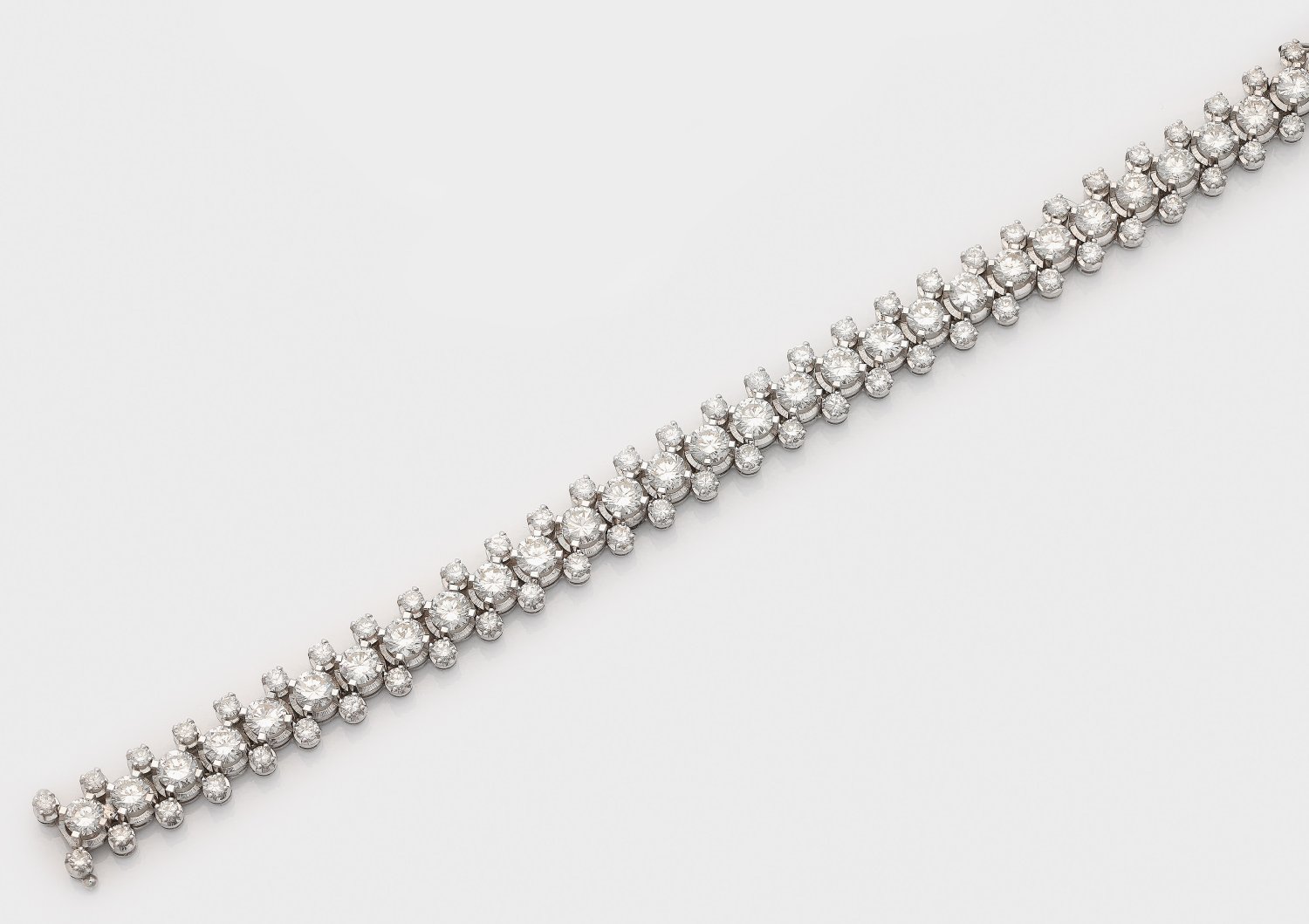 Bracelet set with brilliants total approx. 14,45 ct. (H/vvs-vs), in 18 k white gold. Certificate included.