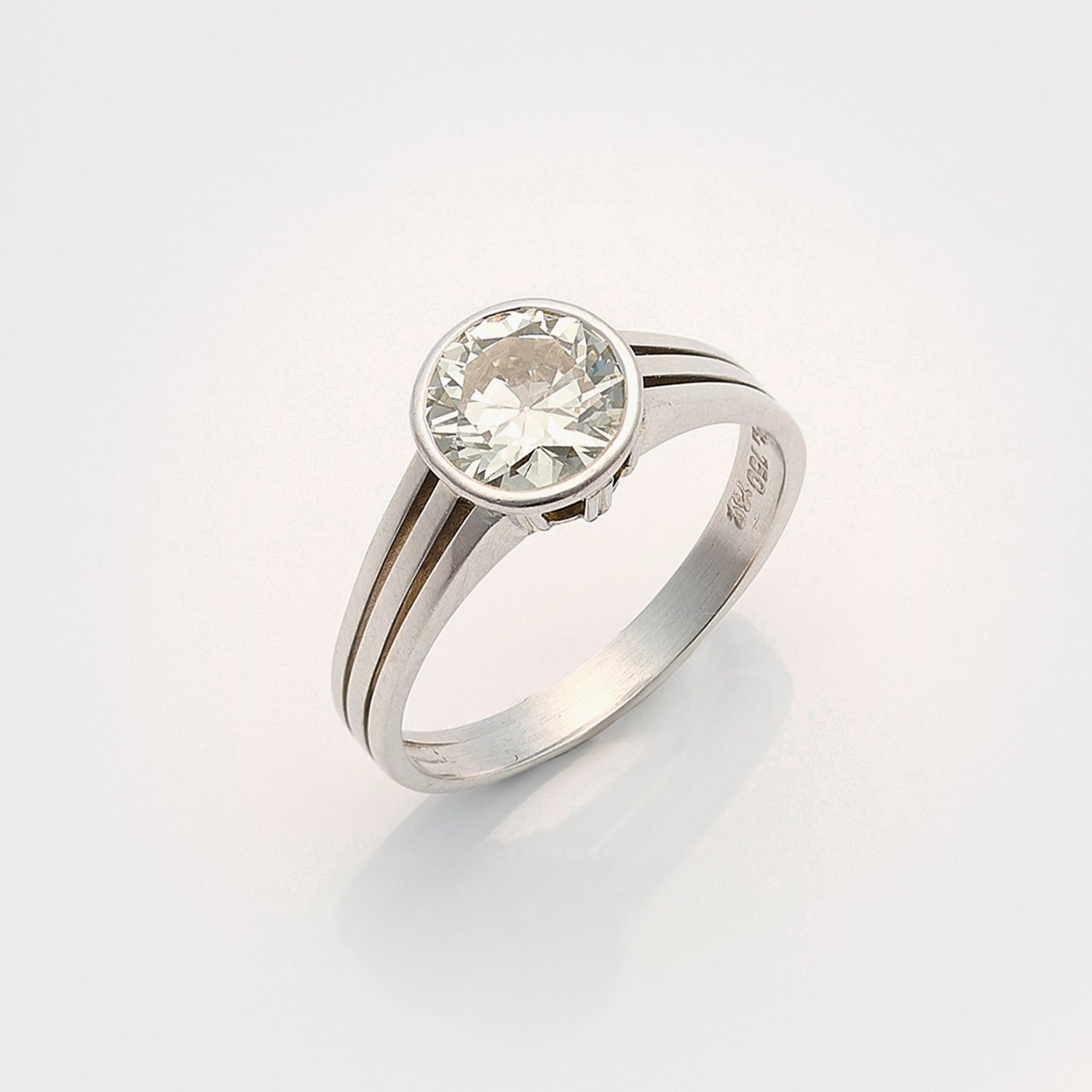 Platin/Weißgold, gest. PT/750. Zentral besetzt mit Altschliffdiamant von ca. 1,85 ct. (J-K/if-vvs), in korrespondierender Zargenfassung. Gew. ca. 4,17 g.
