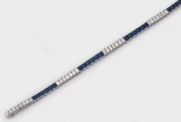 Lot 1100: Hochfeines Diamant-Saphir-Rivière-Armband von Friedrich