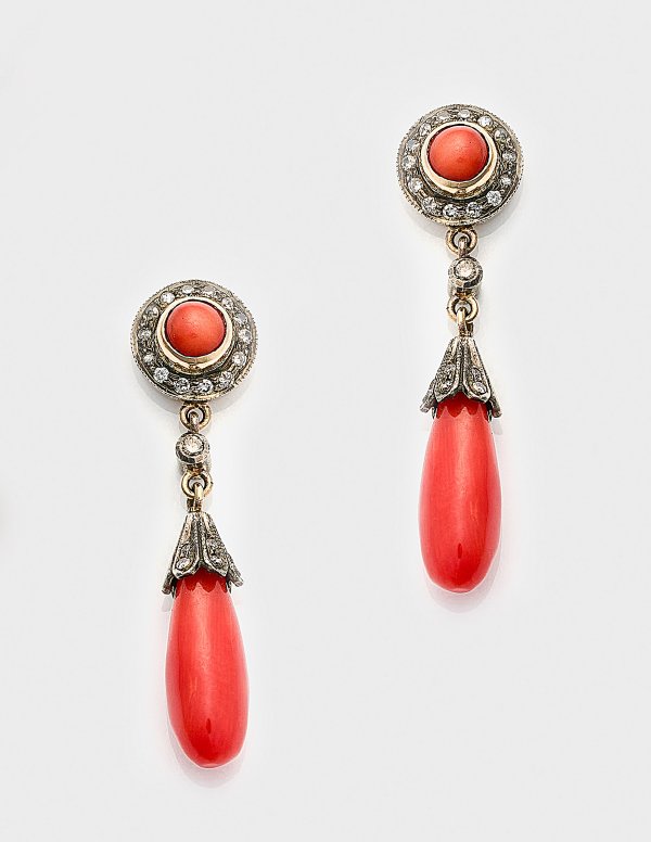 Lot 1207: Paar Belle Epoque Korallen-Diamant-Ohrringe