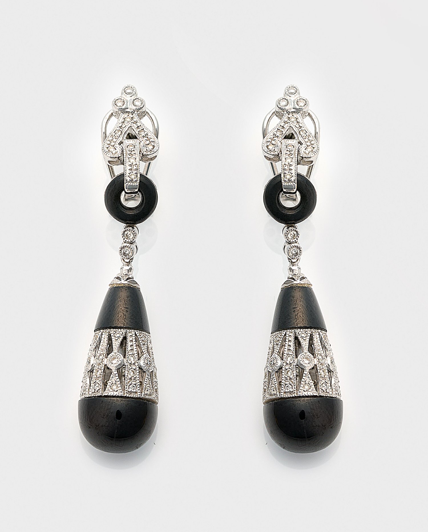 Lot 1208: Paar elegante Onyx-Diamant-Pendeloques in Ajour