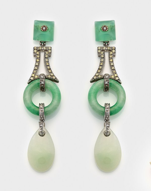 Lot 1209: Paar Jade-Ohrgehänge im Art Déco-Stil