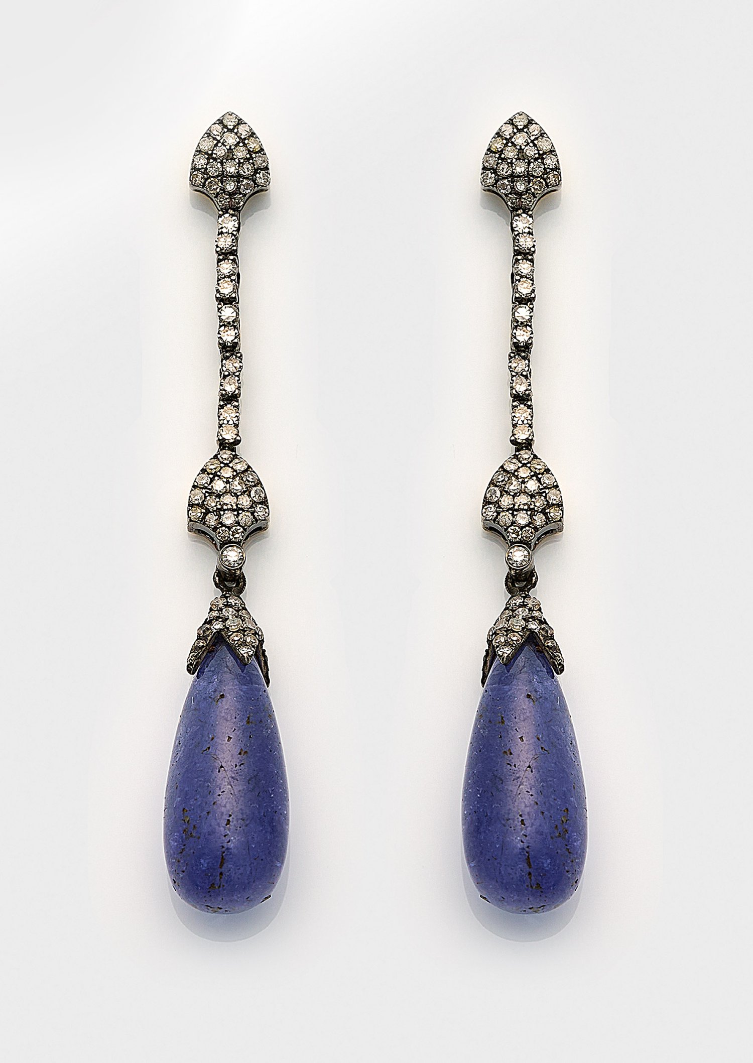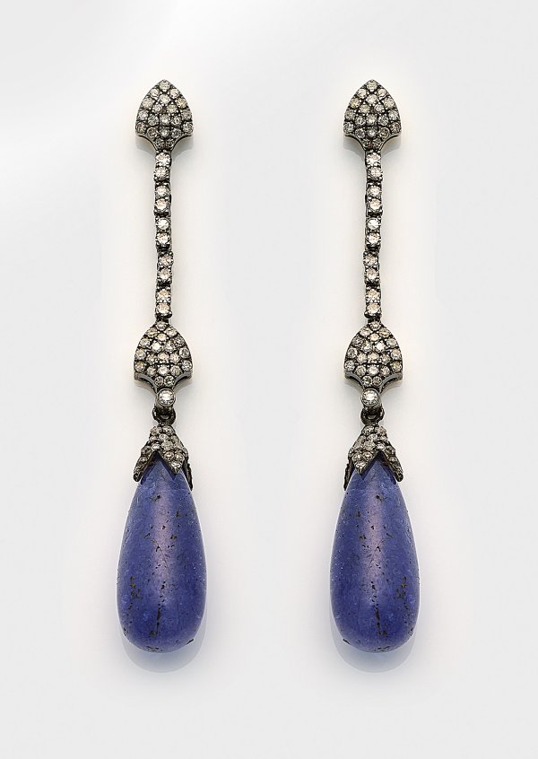 Lot 1215: Paar Belle Epoque Saphir-Diamant-Pendeloques
