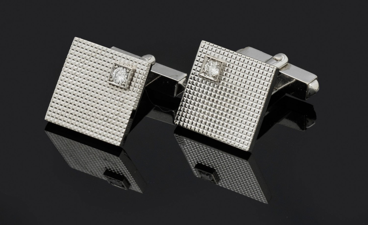 Lot 1222: Paar Herren-Manschettenknöpfe mit Brillantsolitären