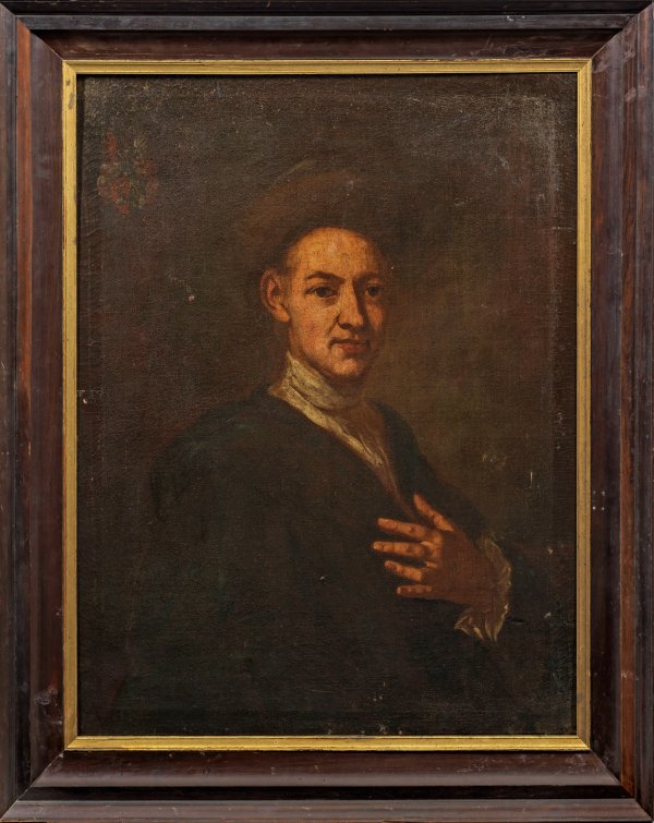 Brustbildnis im Halbprofil, in der linken oberen Ecke ein Wappen. Gsell lernte 1690-1695 in Wien bei Antoon Schoonjans, 1716/17 wurde er in Amsterdam Kunstberater Zar Peter I. von Russland und folgte ihm 1717 nach St. Petersburg. Dort wirkte er u. a. als Kurator der kaiserlichen Galerien, schuf Ikonen, Porträts, Genrebilder und Stillleben. Öl/Lwd.; Restaurierungsbedürftig. 91 cm x 70 cm. Rahmen.