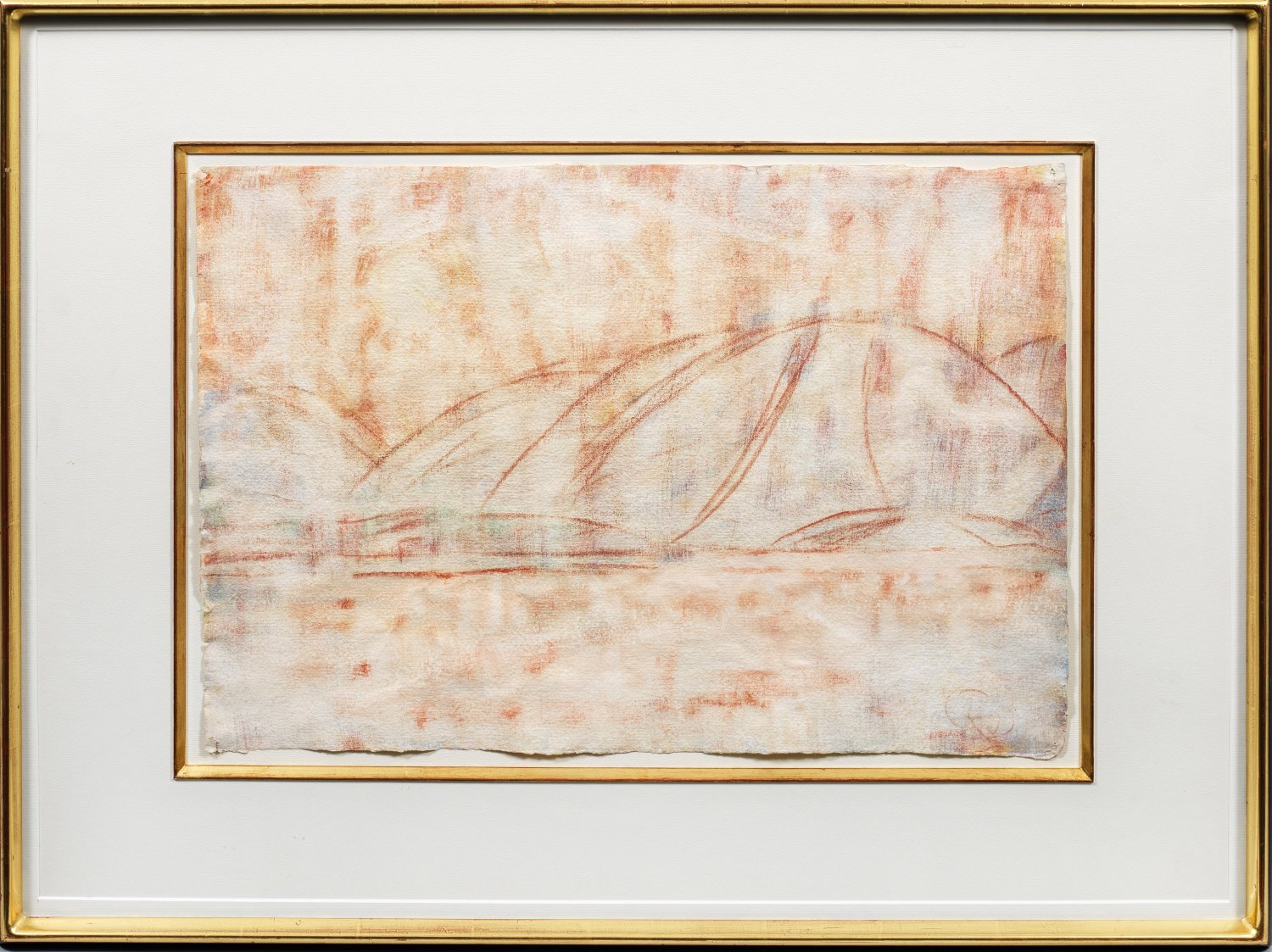 Das charakteristische Blatt aus dem Jahr 1933 zeigt einen stilisierten Blick von Ascona über den Lago Maggiore auf das gegenüberliegende Ufer der italienischen Seite mit den ihn umgebenden Bergen. Es stammt aus einer Werkreihe von Landschaften, die in ihrer lichten Farbigkeit und hohem Abstraktionsgrad an die fast 100 zuvor geschaffenen Seelandschaften William Turners erinnern. Laut Prof. Dr. Paul Vogt ist das Blatt "vermutlich im Winter 1933 aus der Erinnerung im Hagener Atelier entstanden." Der bedeutende deutsche Expressionist lebte seit 1927 aus gesundheitlichen Gründen die meiste Zeit des Jahres in Ascona im Schweizer Tessin. In der Weimarer Republik war Rohlfs ein hoch geachteter Künstler - 1919 fand in der Nationalgalerie in Berlin eine große Sonderausstellung zum 70. Geburtstag statt, 1924 ehrte man ihn in Berlin mit der Mitgliedschaft in der Preußischen Akademie der Künste. Die zunächst widersprüchliche Kunstpolitik der Nationalsozialisten duldete die Kunst von Rohlfs, der kein Lehramt innehatte, noch bis 1937 in gewissem Maße. 1935 durfte in der maßgeblichen Kunstzeitschrift "Die Kunst für alle" zu seinem 85. Geburtstag ein längerer, rühmender, von Hans Pels-Leusden verfasster Artikel über Rohlfs mit en expressionistischer Bilder erscheinen - "ein Gigant der Formen, ein Zauberer der Farbe". 1937 fanden letzte Rohlfs-Ausstellungen statt - in der Galerie Alex Vömel in Düsseldorf ("Aquarelle aus dem Tessin") und in der Galerie Ferdinand Moeller in Berlin ("Neue Aquarelle [...]"). Im selben Jahr fiel jedoch auch Rohlfs gänzlich unter das Verdikt "entartet" zu sein und gehörte zu den verfemten Künstlern der Moderne. Im Rahmen der staatlich organisierten Aktion "Entartete Kunst" wurden 1937 über 500 seiner Arbeiten aus deutschen Museen beschlagnahmt, er erhielt Ausstellungsverbot und wurde am 7. Januar 1938, einen Tag vor seinem Tod, aus der Akademie der Künste ausgeschlossen. "Die Weltkunst" berichtete dann nur knapp vom Tod Rohlfs'. 1939 gehörten auch Werke Rohlfs zu den "Gemälden und Plastiken moderner Meister aus deutschen Museen", die von der Fischer Galerie in Luzern versteigert wurden (neben vielen anderen Arbeiten der französischen und deutschen Moderne). Wassertempera und farbige Kreide/gewaschenes italienisches Bütten. R. u. monogr. u. dat. "CR 33". Verso bez. mit Wvz.-Nr. 33/10 u. Betitelung "Rote Seelandschaft". 38 cm x 56 cm. Rahmen.