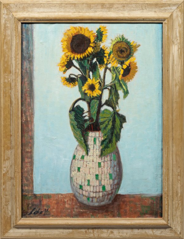 In strahlender Palette und lockerem Duktus gemaltes Stillleben des Berliner Malers, der ab 1902 die Kunstgewerbeschule in Bremen besuchte und anschließend Schüler von Otto Linnemann in Frankfurt a. M. war. 1909 ging er nach Berlin, wo er die Unterrichtsanstalt des Kunstgewerbemuseums als Schüler von Emil Orlik besuchte. 1913/14 bildete er sich mittels eines Stipendiums in Paris weiter. Während der Zeit des Nationalsozialismus als "entartet" eingestuft, starb Schoff einen Tag, nachdem die Gestapo seine Werke in seinem Atelier konfisziert hatten. Öl/Lwd.; L. u. sign.; 78 cm x 58 cm. Rahmen.