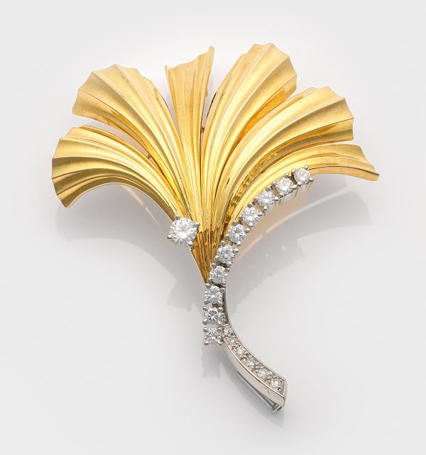 Lot 976: Dekorative Ginkgoblatt-Brosche