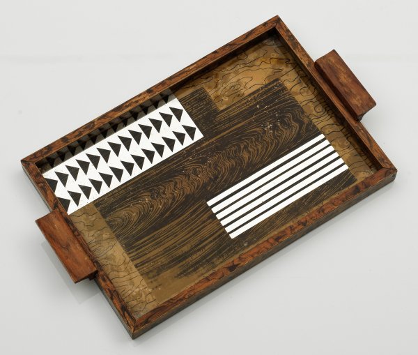 A Belgium coloured wood and glass Art Deco tray.