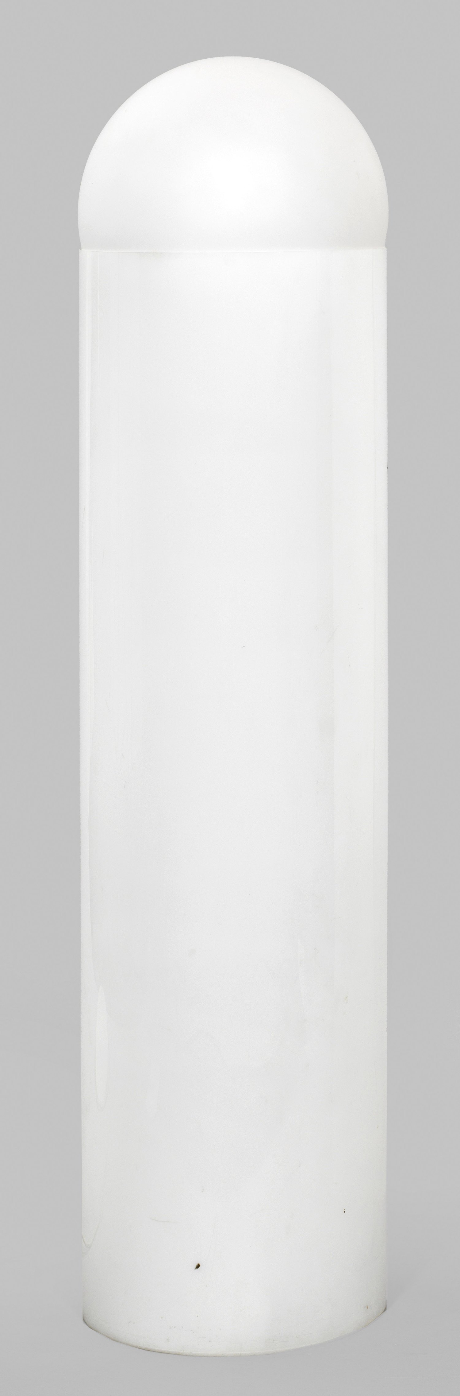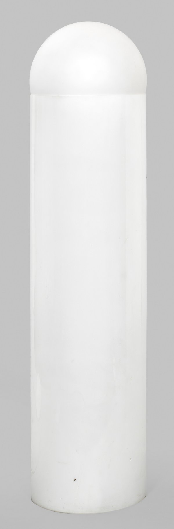 1-flg.; Weißes, satiniertes Glas und weißes Acrylglas. Zylinderförmiger Korpus mit Kugelabschluss. Elektrifiziert. H. 118 cm.